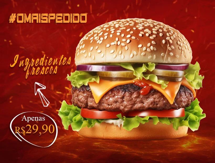 Pão da Casa, Cheddar, Hamburguer de Costela 200 gr, 2 Saucicha, Milho Verde, Cebola Roxa, Alface Americana, Tomate e Bacon